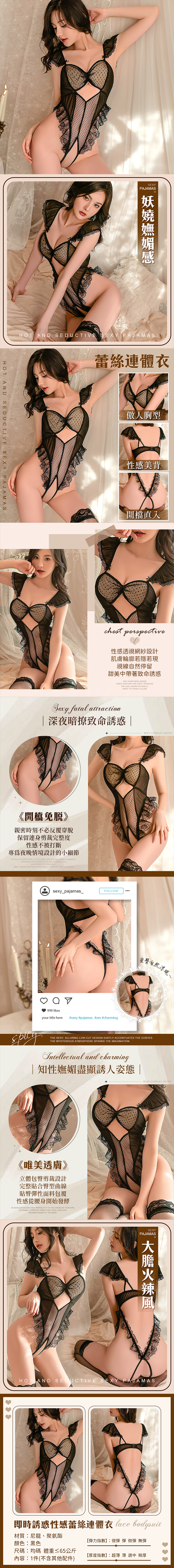 名稱:KR|夜綻花語|性感蕾絲連體衣材質:尼龍、聚氨酯顏色:黑色尺碼:均碼體重<65公斤内容:1件(不含其他配件)